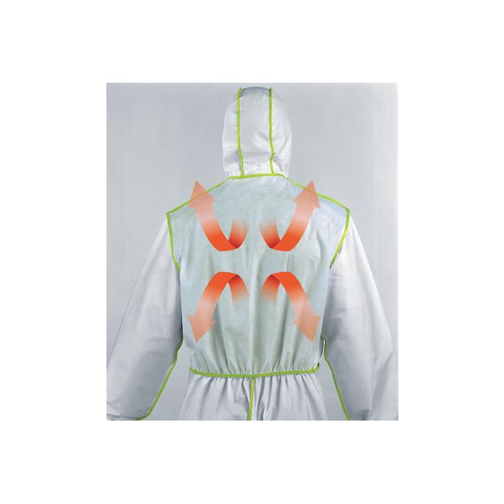 SMS-Rückenpartie (lime): Die großflächige, luftdurchlässige SMS-Partie an der Rückseite gewährleistet ein hohes Niveau an Feuchtigkeitsmanagement und Atmungsaktivität, ohne den Schutzgrad zu reduzieren. Dies minimiert die Hitzebelastung für den Träger.