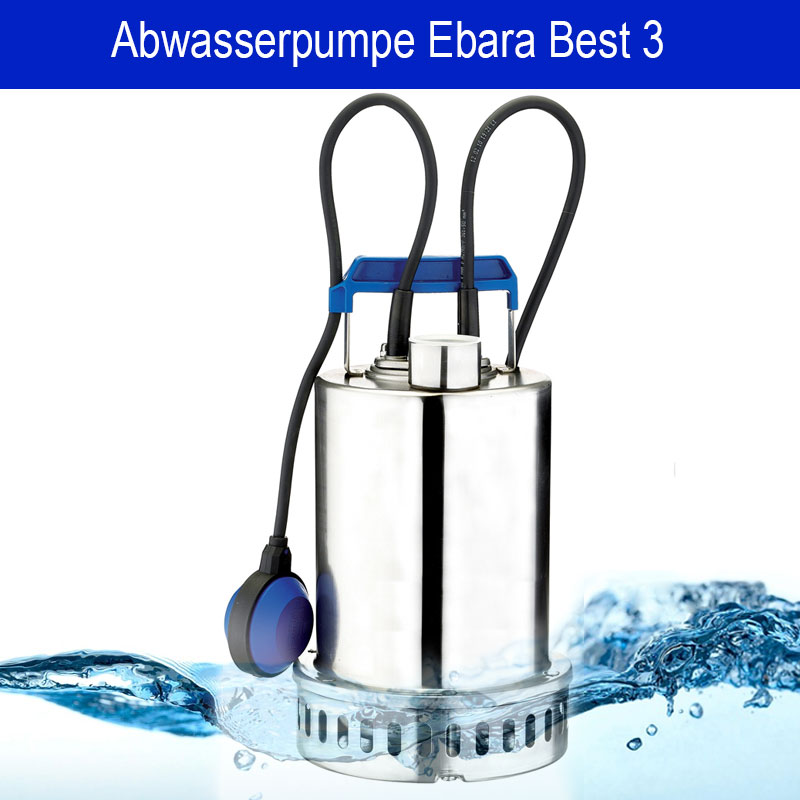 Die Schmutzwasserpumpe Ebara Best 3 MA Edelstahl erhalten Sie mit 10m Netzkabel, Schukostecker und Schwimmerschalter.