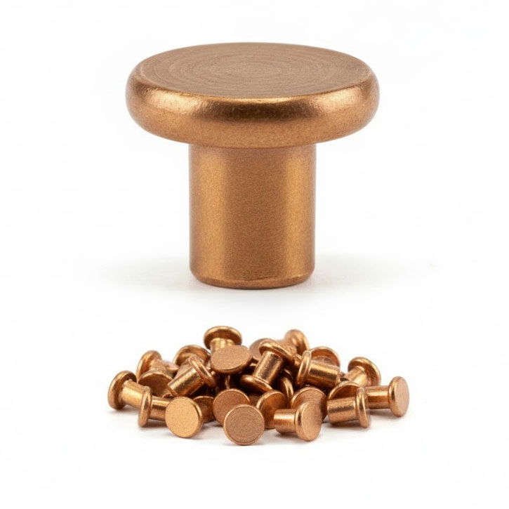 Flachkopfnieten M5 (Ø 5 mm) Vollnieten mit einer Länge von 10 mm, verkupfert Fe-Cu zum Punkt- u. Bolzenschweißen