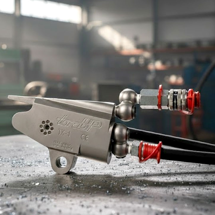 Das einzigartige modulare Konzept der Torcup TX Antriebseinheiten ermöglicht eine unübertroffene Flexibilität. Hier wird lediglich der Antriebszylinder mit der passenden Wechselkassette verbunden, die sich in verschiedenen Sechskant-Schlüsselweiten von 19 mm bis 41 mm unterscheidet. Dies deckt eine extrem breite Palette von Schraubanwendungen ab und minimiert den Bedarf an unterschiedlichen Grundgeräten. Der Multi-Axen Anschluss ist ein entscheidender Vorteil, da er eine freie und flexible Positionierung des Schlauches ermöglicht – für maximale Bewegungsfreiheit auch auf engstem Raum.
