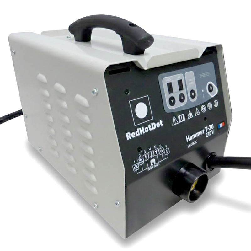 Der Hammer TT 2600A von RedHotDot ist ein professioneller Ausbeulspotter, der sich mit einem maximalen Ausgangsstrom von 2600 A ideal für Ausbeul- und Glätt-Arbeiten an dünnwandigen Außenhautkarosserie-Elementen wie Motorhauben, Türen und Dächern eignet. Dank seiner innovativen Technologie minimiert er die Arbeitszeit und garantiert Ihnen top-professionelle Ergebnisse bei der Karosserie-Instandsetzung.