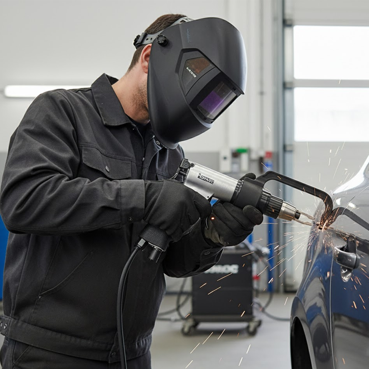 Der Druckluft Schweißpunktbohrer ist ein unverzichtbares Trennwerkzeug in der modernen Karosserieinstandsetzung. Als essenzieller Bestandteil der Blechbearbeitung ermöglicht dieses Gerät die schnelle, saubere und materialschonende Entfernung von Schweißpunkten, bevor neue Karosserieteile gefügt werden.Überragende Performance auf modernen Stählen
