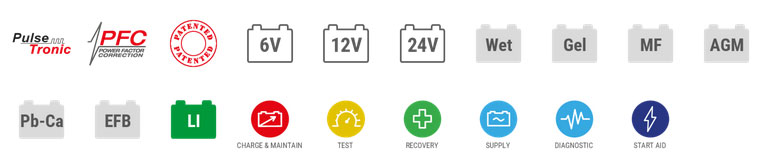 Automatisches Laden und Erhaltungsladen: Die Pulse Tronic Technologie testet, überwacht und erhält den optimalen Ladezustand.