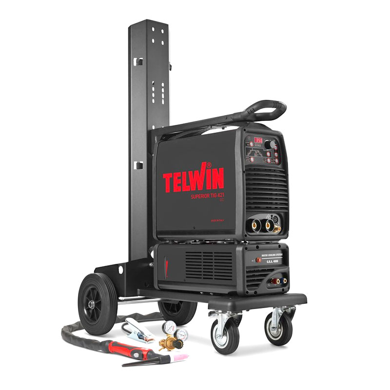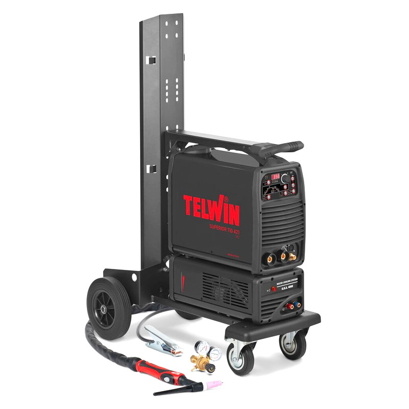 Die Superior TIG 421 DC-HF/Lift Aqua ist die schlüsselfertige WIG-Schweißstation für den professionellen Dauereinsatz. Mit einer maximalen Leistung von 350A bei 400V und der integrierten Wasserkühlung ist dieses Mikroprozessor-gesteuerte DC-Gerät prädestiniert für hohe Einschaltdauern in der Industrie und im Anlagenbau.