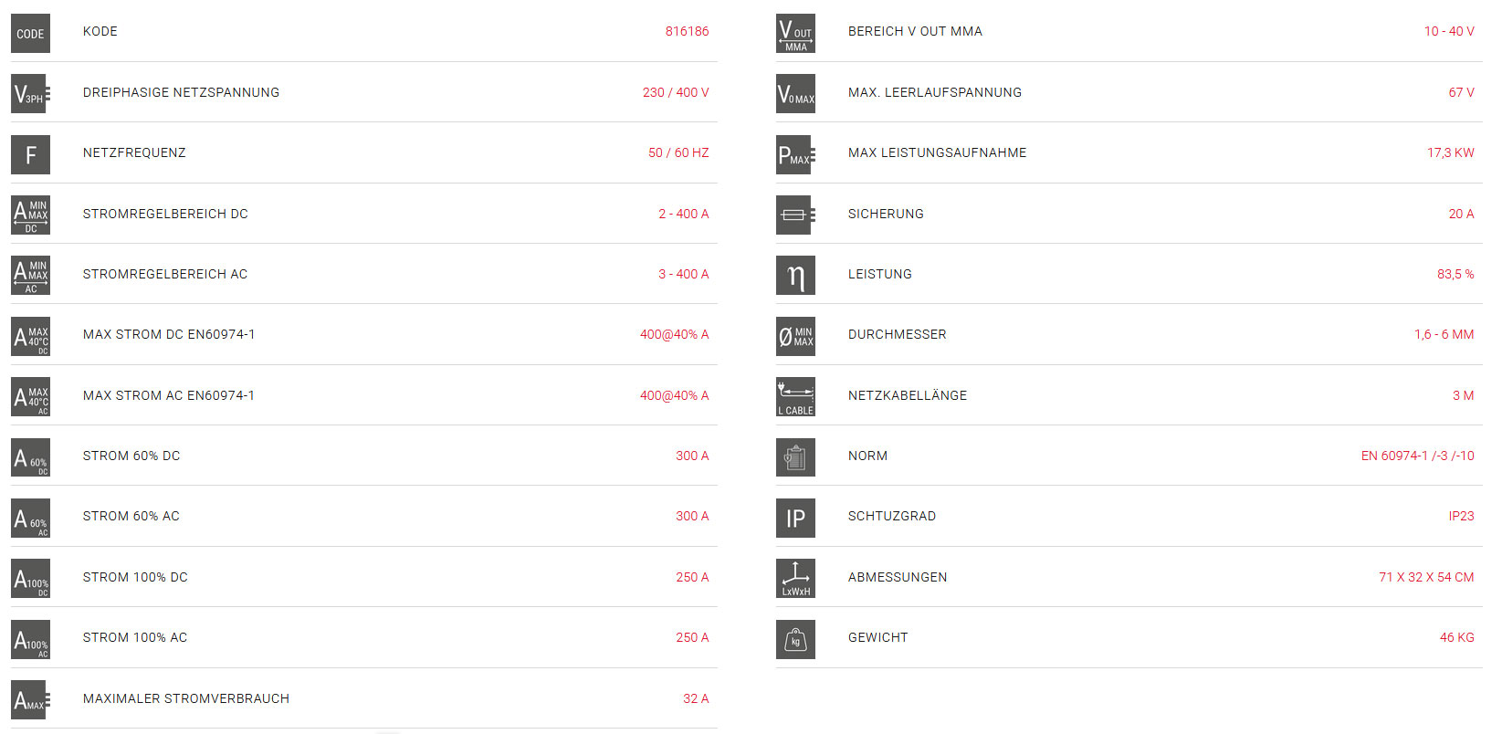 Dieses Gerät meistert alle gängigen Werkstoffe: Stahl, rostfreier Stahl (Edelstahl), Titan, Kupfer, Nickel, Magnesium und deren Legierungen – und dank der AC-Funktion vor allem Aluminium.