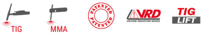 Die zentrale Stärke dieses Gerätes ist die Voltage Reduction Device (VRD) Einrichtung. Diese senkt die Ausgangsspannung auf ein sicheres Niveau ab, sobald das Gerät eingeschaltet, aber nicht geschweißt wird.