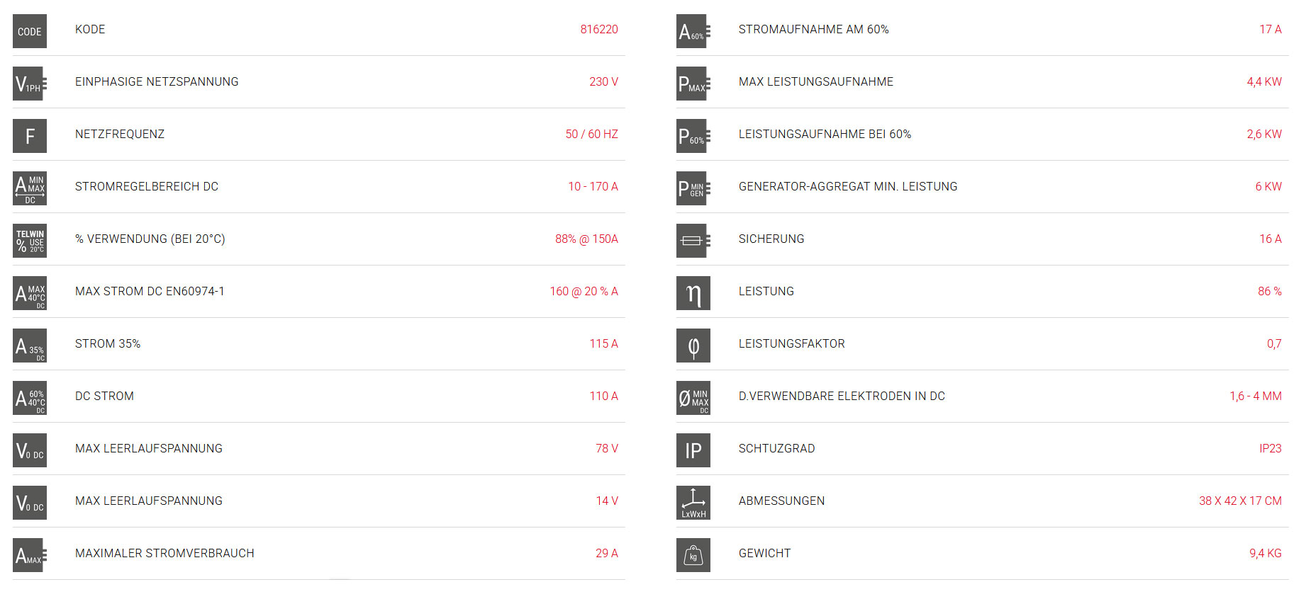 Der Gleichstrom (DC) Inverter Tecnica TIG 190 DC VRD eignet sich nach dem WIG (LIFT Zündung) und MMA Verfahren und kann mit verschiedensten Werkstoffen wie Stahl, Edelstahl, Titan, Kupfer, Nickel und ihren Legierungen arbeiten. Die maximale Leistung beträgt 170A bei 230V.