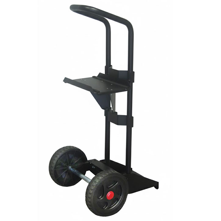 Hohe Mobilität: Dank der zwei groß dimensionierten Räder lässt sich der Wagen auch auf unebenen Böden leicht manövrieren und bequem zum Einsatzort bewegen.