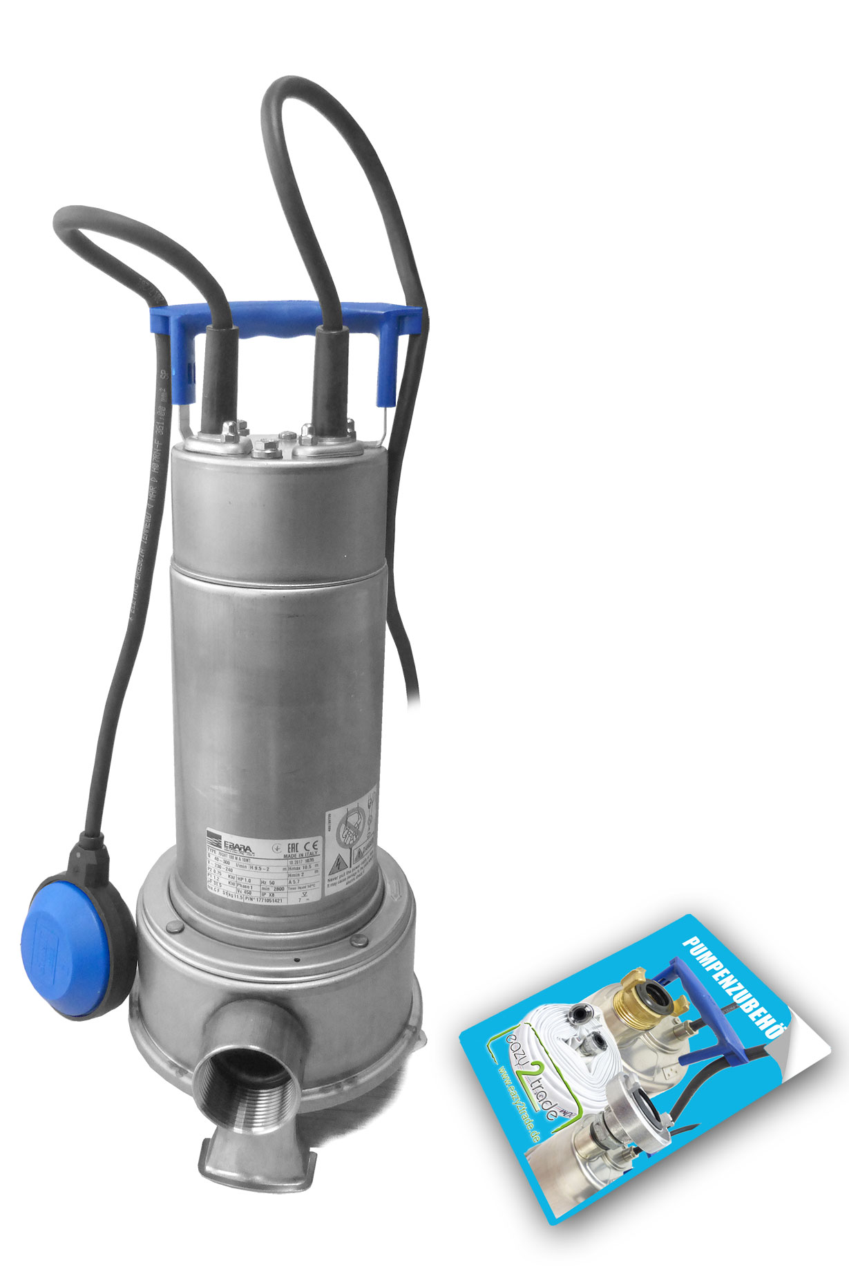Die Tauchmotorpumpe Ebara Right 100 MA Edelstahl mit hoher Fördermenge erhalten Sie mit 10 m Netzkabel, Schukostecker und Schwimmerschalter.