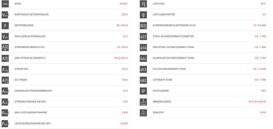 Das geringe Gewicht vom Schutzgas Schweißgerät 200A und die äußerst geringen Abmessungen stellen sicher, dass sich das Gerät leicht an alle Arbeitsstätten im Innen- und Außenbereich transportieren lässt.