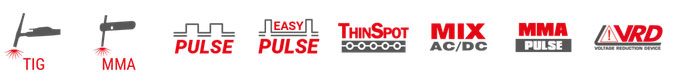 Zwei Schweißverfahren in einem Gerät: Das Gerät beherrscht sowohl das WIG- als auch das MMA-Schweißen (E-Hand) im kontinuierlichen und im Puls-Modus.